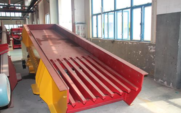 振动给料机又称喂料机,可把块状、颗粒状物料从贮料仓中均匀、定时、连续地给到受料装置中去,在砂石生产线中可为破碎机械连续均匀地喂料,并对物料进行粗筛分;可以向带式输送机、斗式提升机、筛分设备等给料,向破碎机、粉碎机等喂料,以及用于自动配料,定量包装等,并可用自动控制的流程中,实现生产流程的自动化。